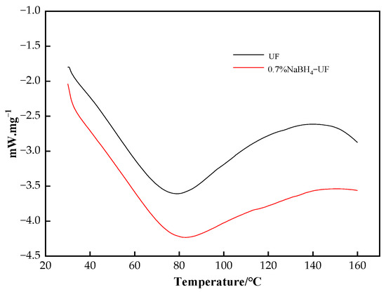 DSC traces of UF resin and 0.7% NaBH4-UF resin (heating rate 10 °C·min−1).
