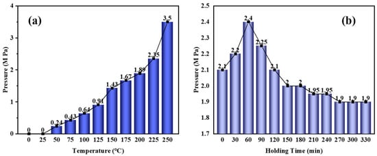 The curves of pressure versus (a) temperature and (b) holding time at 220 °C.