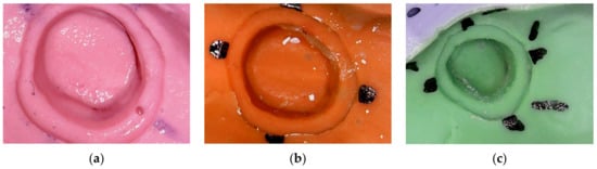 - Vitti, R.P.; da Silva, M.A.B.; Consani, R.L.X.; Sinhoreti, M.A.C. Dimensional Accuracy of Stone Casts Made from Silicone-Based Impression Materials and Three Impression Techniques. Braz. Dent. J. 2013, 24, 498–502. [Google Scholar] [CrossRef] [PubMed][Green Version]
