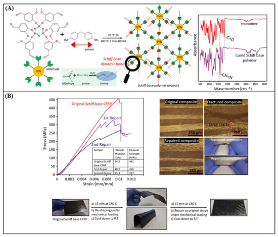 - Fei, M.; Chang, Y.-C.; Hao, C.; Shao, L.; Liu, W.; Zhao, B.; Zhang, J. Highly engineerable Schiff base polymer matrix with facile fiber composite manufacturability and hydrothermal recyclability. Compos. Part B Eng. 2023, 248, 110366. [Google Scholar] [CrossRef]