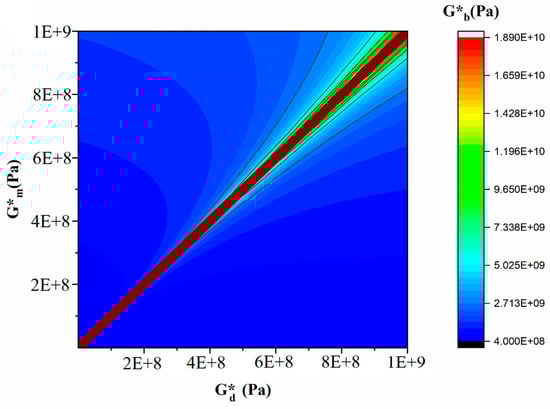 Figure 14. Countorplot of the effect of droplet elasticity and matrix elasticity with polymer blend nanocomposite elasticity.