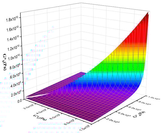 Figure 15. 3D plot of the effect of droplet elasticity and matrix elasticity with polymer blend nanocomposite elasticity.
