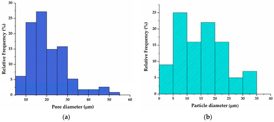 Distribution of: (a) pore diameters in GB-CA; (b) particle diameter in GB-TCP-HA-CA.