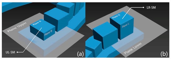The generated corresponding best-fit planes using the best-fit method. (a) Best-fit plane of the upper surface of the base on the maxillary model (Plane Upper), best-fit planes of the occlusal surface and buccal surface of SDC UL-SM (Plane O and Plane B); (b) best-fit plane of the upper surface of the base on the mandibular model (Plane Lower), best-fit planes of the occlusal surface and lingual surface of SDC LR-SM (Plane O and Plane L).