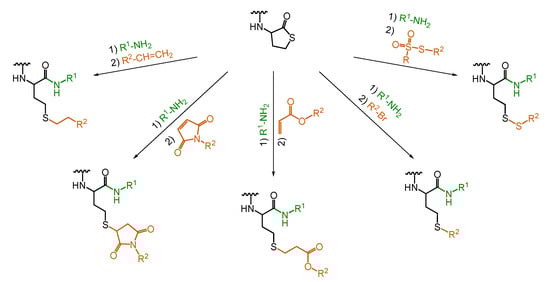 - Spicer, C.D.; Davis, B.G. Selective Chemical Protein Modification. Nat. Commun. 2014, 5, 4740. [Google Scholar] [CrossRef] [PubMed]