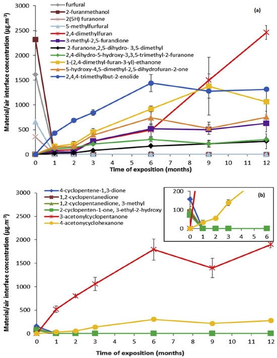 - Badji, C.; Beigbeder, J.; Garay, H.; Bergeret, A.; Bénézet, J.-C.; Desauziers, V. Under glass weathering of hemp fibers reinforced polypropylene biocomposites: Impact of Volatile Organic Compounds emissions on indoor air quality. Polym. Degrad. Stab. 2018, 149, 85. [Google Scholar] [CrossRef]
