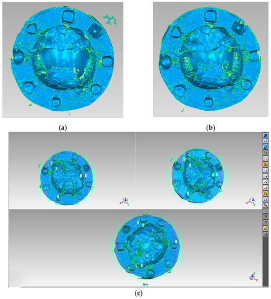 Figure 4a,b) was employed to manually register and align the scanned data of the frameworks, both with and without light silicone rubber (