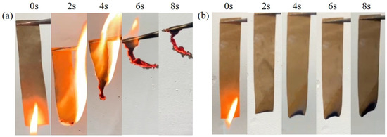 The samples were tested for vertical flammability by applying a butane flame for 2 s on the short side of the samples (20 × 100 mm). The final residual amount and burning rate of the samples were recorded. The experiments were repeated three times for each sample. The burning rate of microcellulose paper can be defined by the following equation: Burning rate = microcellulose paper burning length/burning time [20].