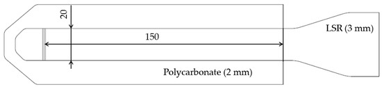 Depending on the application, the composite test specimens were manufactured following VDI Guideline 2019 (Figure 1) using a direct multi-component process or insert technology. In direct multi-component injection molding, the production of the polycarbonate pre-molded part and overmolding with LSR take place simultaneously; in insert technology, they take place separately. For the polycarbonate molding process, the cylinder heating temperature was 300 °C, and the mold heating temperature was 100 °C. In the overmolding process, the LSR cavity was heated up to 140 °C, and the heating time was 30 s.