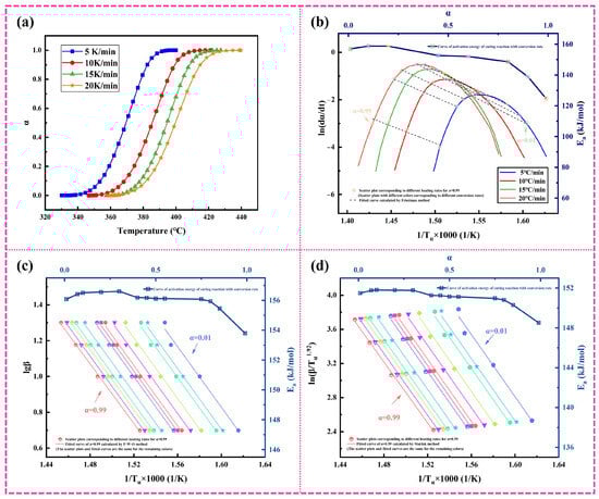 - Starink, M. A new method for the derivation of activation energies from experiments performed at constant heating rate. Thermochim. Acta 1996, 288, 97–104. [Google Scholar] [CrossRef]
