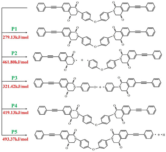 - Chen, Z.; Wang, L.; Lin, J.; Du, L. Thermal curing mechanism of acetylene-terminated polyimides: A combination of density functional theory computation and microkinetic analysis. Polymer 2021, 218, 123529. [Google Scholar] [CrossRef]
