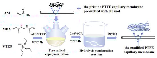 Schematic illustration of the preparation process for the hydrophilic modified PTFE capillary membranes.