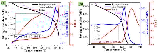 DMA experimental results, (a) PMI foam, (b) PMI matrix material.