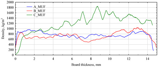 - Borysiuk, P.; Auriga, R.; Kośka, P. Influence of the filler on the density profile of wood polymer composites. Ann. Wars. Univ. Life Sci.-SGGW For. Wood Technol. 2019, 106, 31–37. [Google Scholar] [CrossRef]
