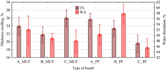 - EN 317; Particleboards and Fibreboards. Determination of Swelling in Thickness after Immersion in Water. European Committee for Standardization: Brussels, Belgium, 1993.