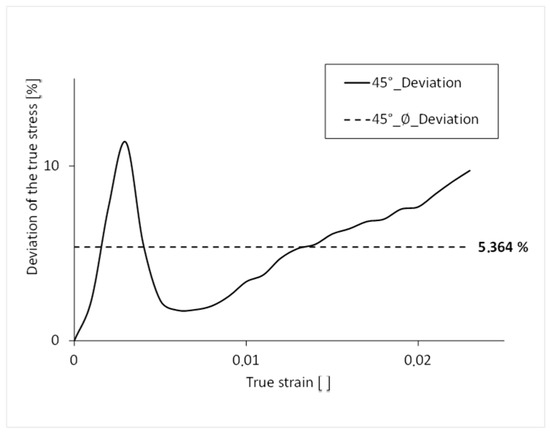 Percentage deviation of the stress over the course of the strain 45°.