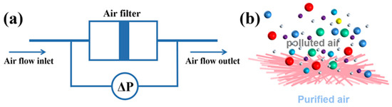 With the rapid development of industrialization and urbanization, particulate matter (PM) pollution in the air [1,2], especially the notorious PM2.5 (particulate matter with an aerodynamic diameter ≤ 2.5 µm), which was listed as the first category of carcinogens by the World Health Organization, causes a growing impact on visibility, climate, and human health and quality of life [3,4,5,6,7]. They come in many forms, such as dust, mist, fumes, smoke, and fog, which are produced not only by nature but also through human activities [8]. Therefore, it is essential to develop high-performance filters with high filtration efficiency, low energy costs, and a long service life to combat severe air pollution.