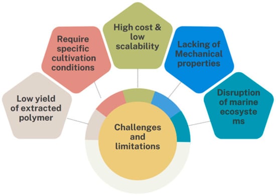 One of the key challenges of plastic is its longevity in the environment. Plastics can take hundreds of years to decompose naturally, leading to a persistent and long-lasting pollution problem. This means that the plastic waste generated today will continue to impact ecosystems and human health for generations to come [56]. Addressing the effects of plastic pollution requires a multifaceted approach, including reducing plastic production and consumption, improving waste management practices, and increasing recycling rates [57]. Additionally, efforts to promote biodegradable and compostable plastics, along with alternative materials, are underway to reduce plastic waste and its environmental impact [58]. Among the recent solutions to overcome the hazards of using conventional plastics is developing more natural and economical types of bio-based plastics. The pervasive and detrimental impacts of plastic pollution, as outlined in this section, underscore the urgent need for sustainable alternatives to traditional plastics. Fortunately, recent advancements in the field of bioplastics offer a promising solution to mitigate the environmental challenges posed by plastic waste. In particular, the use of macroalgae as a raw material for bioplastic production presents a viable and environmentally friendly approach.