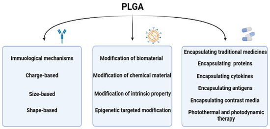 PLGA’s tunable properties, including degradation rate, mechanical strength, and drug release kinetics, make it an ideal candidate for addressing the challenges associated with cancer treatment [10,11,12]. Its unique immunogenicity, histocompatibility and Interaction with the immune system are its basic properties in immunotherapy.