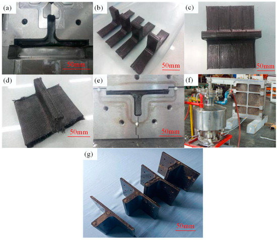 (2) The novel T-joints with in-plane load-carrying configuration prepared by the prepreg-RTM co-curing process show no obvious fiber local winding or resin-rich regions inside, and the interface quality between the internal skeleton and external skin is excellent.
