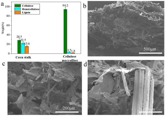 As a globally important food crop, corn requires about four months to grow and generates 0.25 billion tons of cornstalks (CSs) in China annually [,,]. However, less than half of these CSs are used for animal feed, and most are incinerated or thrown away as waste, causing serious environmental pollution. Corn plants consist of the cob, leaf, husk, and stalk. Corn husks can be used for bioplastic [], textile fibers [,], cellulose nanocrystals [], etc., due to their high cellulose content []. Scientific progress has created opportunities for cornstalk use in bioethanol, dissolved pulps [], nanocellulose [,,], cellulose fibers [,,], polymer composites [,,], bioplastics [,,], aerogel [], etc. Exploiting CSs efficiently would help recycle and add value to agricultural waste.