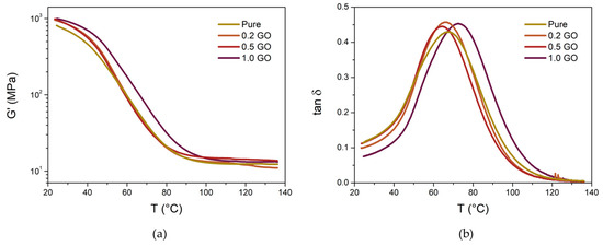 (a) G’ and (b) tan δ curves of GO-based nanocomposites.