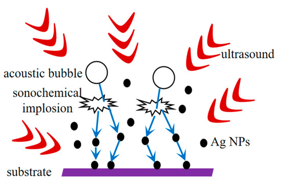 Mechanism diagram of acoustic chemical coating Ag NPs antimicrobial layer.