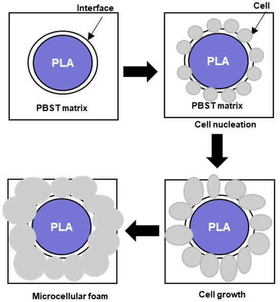 - Sun, Z.; Wang, L.; Zhou, J.; Fan, X.; Xie, H.; Zhang, H.; Zhang, G.; Shi, X. Influence of Polylactide (PLA) Stereocomplexation on the Microstructure of PLA/PBS Blends and the Cell Morphology of Their Microcellular Foams. Polymers 2020, 12, 2362. [Google Scholar] [CrossRef] [PubMed]