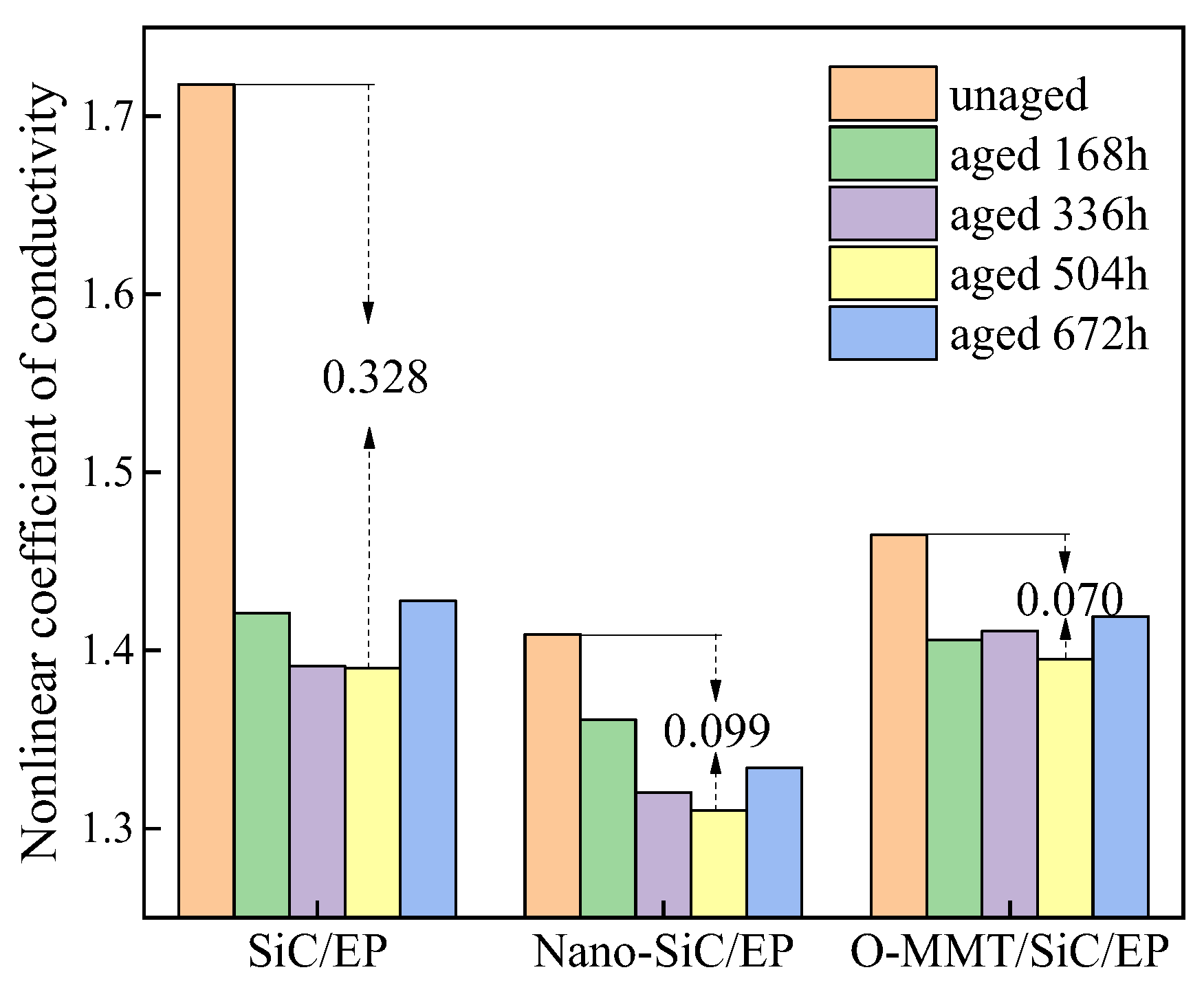 Liu, Y.; Gao, J.; Guo, N.; Sun, J.; Hu, H.; Chi, X. Nonlinear Conductivity and Thermal Stability of Anti-Corona Epoxy Resin Nanocomposites. Polymers 2024, 16, 1296. https://doi.org/10.3390/polym16091296