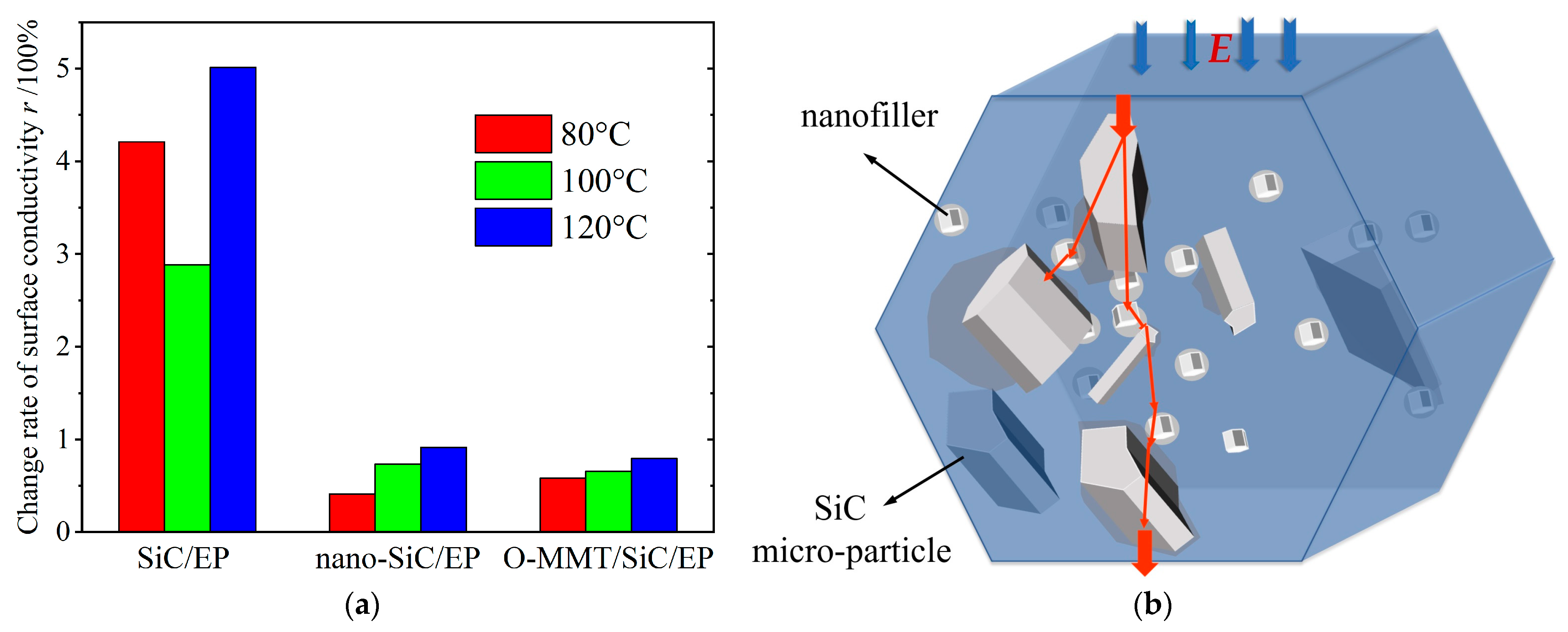 - Guo, N.; Sun, J.; Li, Y.; Lv, X.; Gao, J.; He, M.; Zhang, Y. Nonlinear Surface Conductivity Characteristics of Epoxy Resin-Based Micro-Nano Structured Composites. Energies 2022, 15, 5374. [Google Scholar] [CrossRef]