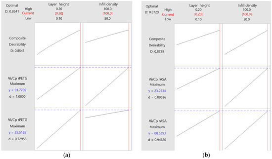 Optimization plots for 3D-printed materials: (a) rPETG; (b) rASA.