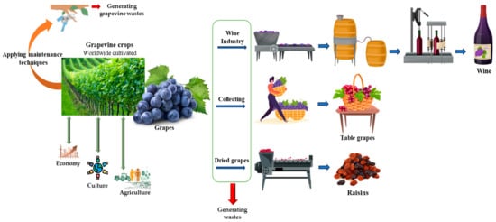 By adopting resource-efficient, environmentally friendly methods, and pursuing value-added applications for grape-derived waste, the industry can not only mitigate its environmental footprint but also enhance its economic viability in an increasingly sustainability-conscious world. Through research, innovation, and collaborative efforts across sectors, the grapevine industry has the potential to become a model of agricultural sustainability, setting an example for other crop systems to follow [].