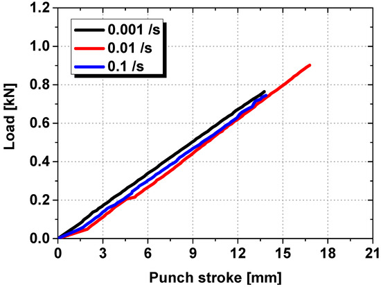 Punch stroke–load graph of tempered glass with respect to the strain rate.