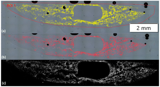 An Olympus BX53M microscope (Olympus, Tokyo, Japan) with a brightfield observation method and a camera resolution of 5760 × 3600 pixels was used for the inspection of the polished specimens described in