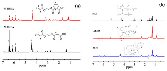 1H NMR spectra of (a) MTHEA, MAHEA and (b) ESO, AA, AESO, IPM.