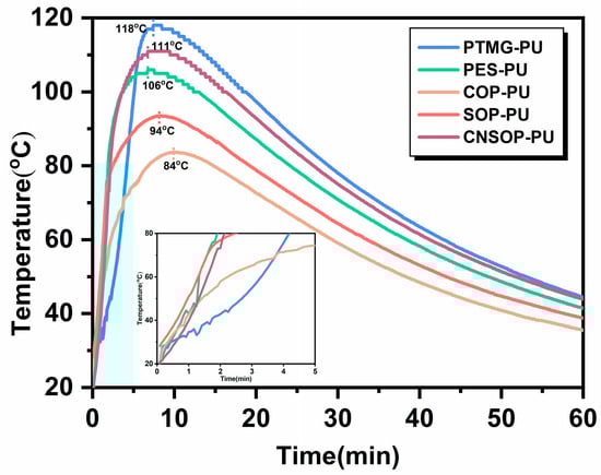 Temperature–time curve of five reaction systems.