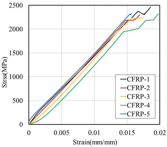 Stress–strain relationship of CFRP tensile strength test.