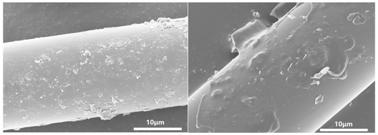 SEM images of KH550 (left) and KH560 (right) surface-modified basalt fibers.
