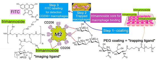 Cytometry was performed on a BD FACSAria™ III Cell Sorter instrument (BD Bioscience, San Jose, CA, USA). The fluorescence of the FITC-labeled polymeric ligands captured by the CD206+ macrophage was analyzed. There was a change in the percentage of cells fluorescing in the FITC channel. Cells not incubated in the sample solution were evaluated as a control.