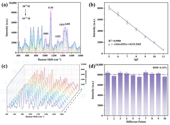 - Xue, X.; Chen, L.; Wang, C.; Zhao, C.; Wang, H.; Ma, N.; Li, J.; Qiao, Y.; Chang, L.; Zhao, B. Highly sensitive SERS behavior and wavelength-dependence charge transfer effect on the PS/Ag/ZIF-8 substrate. Spectrochim. Acta. Part A Mol. Biomol. Spectrosc. 2021, 247, 119126. [Google Scholar] [CrossRef]