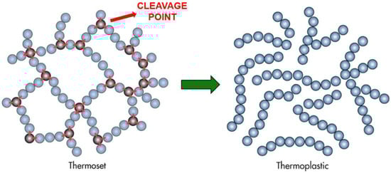 Schematic of the cleavage mechanism induced by Recyclamine® hardener and conversion to the thermoplastic system (authors’ own figure).
