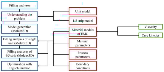4] used Kamal’s model to simulate the degree of EMC cure over time and temperature, while also employing the Castro–Macosko model to track viscosity changes during filling.