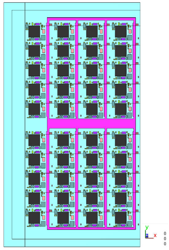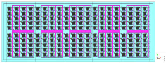 Figure 7 includes a left boundary section along with a 1/5 strip. It can be simulated for the vacuum conditions at the junction between the substrate and the fill area. This allows for the observation of the EMC filling behavior in the leftmost column of units.