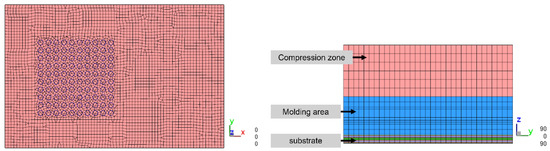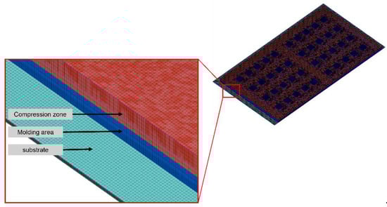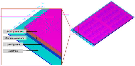 Figure 13, is set on the top of the compression zone. The function of the moving surface is to push the EMC for compression molding filling. The compression direction in the simulations is opposite to that in the actual manufacturing process. Therefore, gravity is set to 980.66 cm/s