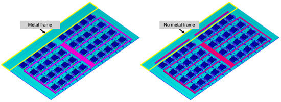 Optimization of adding a shielding metal frame to the leftmost side of the strip by the Taguchi method In the earlier parts of this section, it is hypothesized that the asymmetry of the strip and vacuuming during the compression molding process causes a void formation in the leftmost units. Therefore, whether to add a metal shielding frame to the leftmost side of the strip (