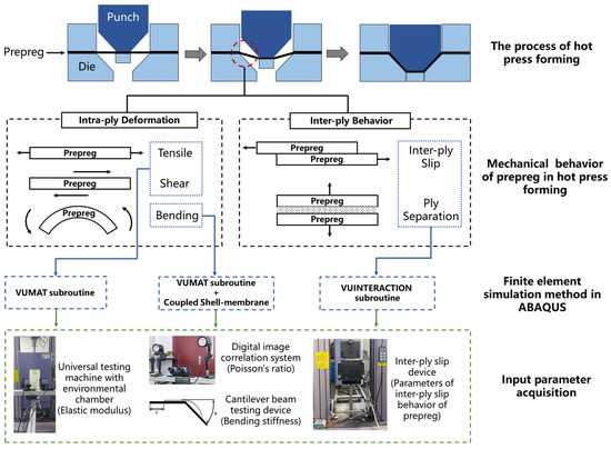 Deformation behavior of prepreg during hot press forming and finite element modeling framework.