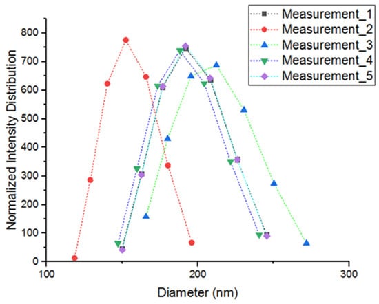The particle size distribution of the nano-BC was determined by the dynamic light scattering (DLS) method using a NanoPlus HD-3 (Norcross, GA, USA) instrument (Figure 7). Figure 7 clearly reveals that the size distribution was narrow and unimodal. Measurements were carried out on ultrasonically dispersed samples in a pure water medium at room temperature.