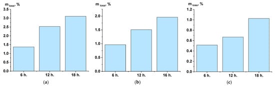 The determination of mass loss showed that, during SSP at 270 °C, weight loss occurred more actively, as demonstrated by the histograms in Figure 4.