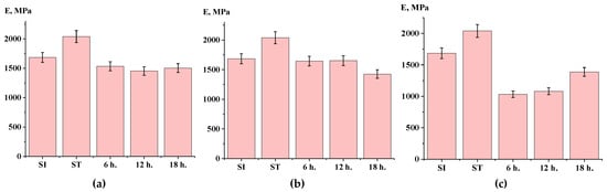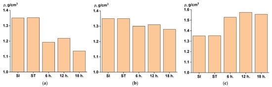 The addition of titanium dioxide, of course, increased the density of the material in comparison with the SI and ST samples, and it also eliminated the loss of mass and density in the composition at later stages of SSP in comparison with the samples (Figure 5a,b).