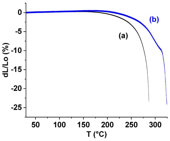 Thermomechanical curves of the sample ST-270-18 (a) and ST-270-18 + TiO2 (b).